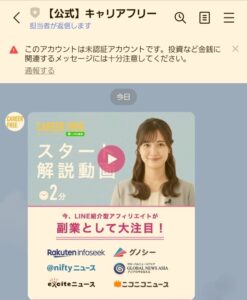 • CAREER FREEは「LINE登録型アフィリエイト」と説明されますが、実質的な作業や費用の実態はLP上では十分に確認できませんでした。