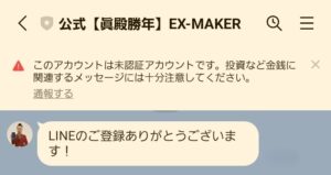 「公式【眞殿勝年】EX-MAKER」という名称のアカウントが表示されました。