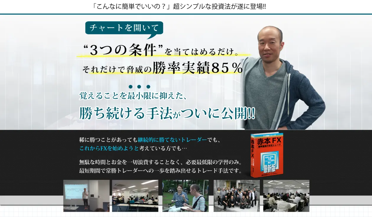 「勝率85%」を謳い、「シンプルで高勝率」を目指す手法を、PDFテキスト+動画講義などを通じて学べる教材です。
