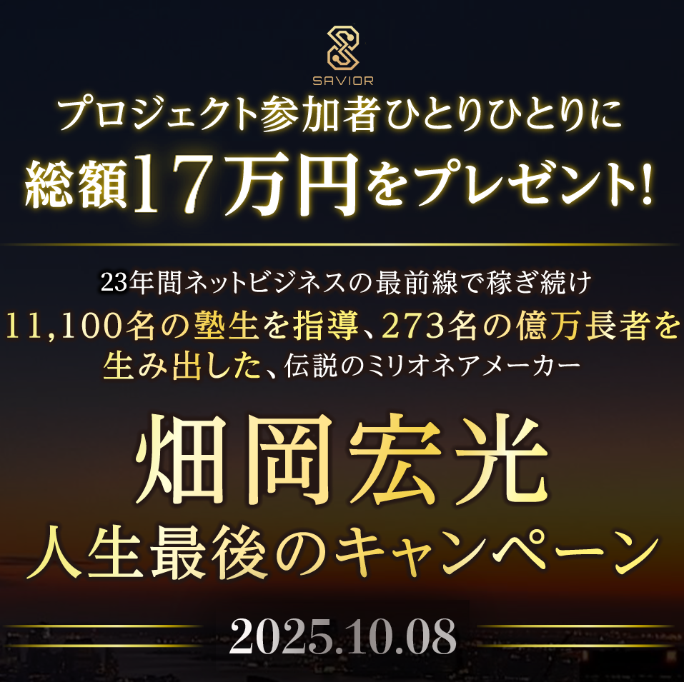 ・「THE SAVIOR に参加した全員がたった1つのサイトを使って畑岡宏光とまったく同じ稼ぎ方を完全再現。」