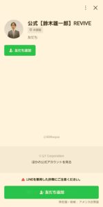 「公式【鈴木雄一郎】REVIVE」と表示されたLINEアカウントに遷移します。