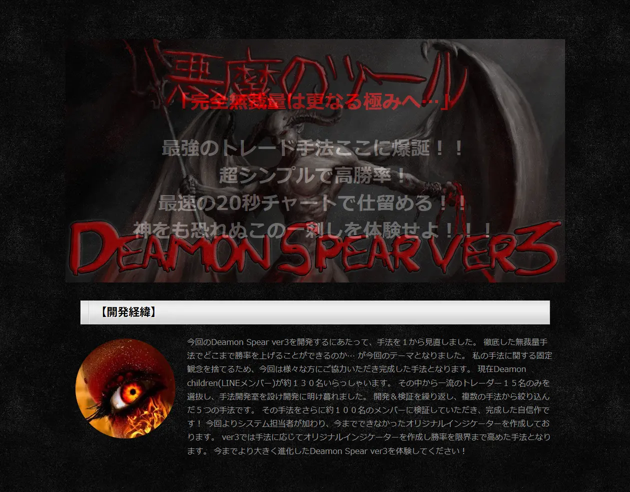 「Deamon Spear ver3」は魅力的な宣伝文句が並びますが、冷静に分析すると不安点も多く見えてきます。