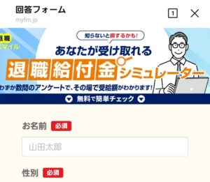 受給可能金額の無料診断として、詳細な入力フォームに進みます。