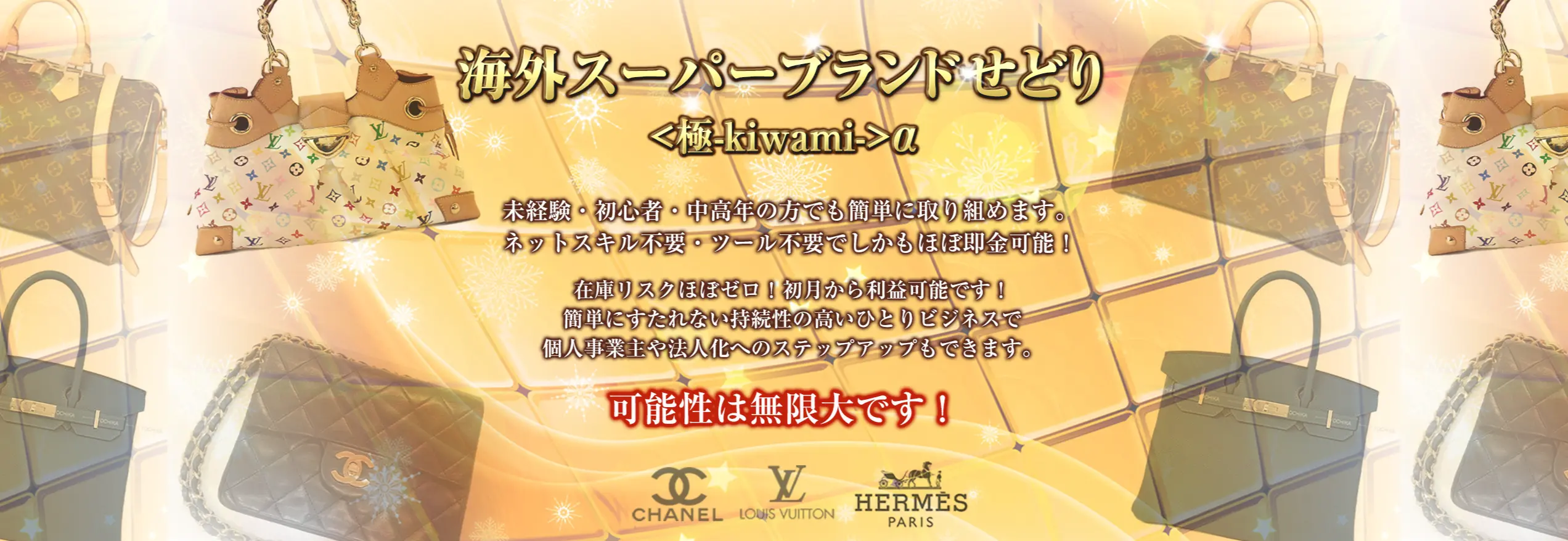 「海外の有名ブランド中古品をリサイクルショップ等で仕入れて転売(せどり)する手法を“堅実志向”で教える物販教材」です。