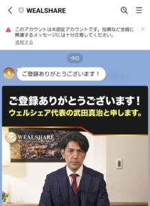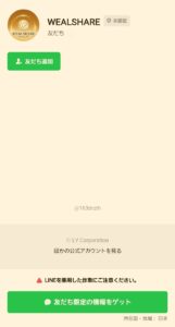 LINE上では「WEALSHARE」という未認証アカウントが表示されます。