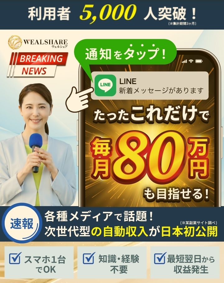 • 「LINEの通知を確認するだけで毎月80万円が目指せる」