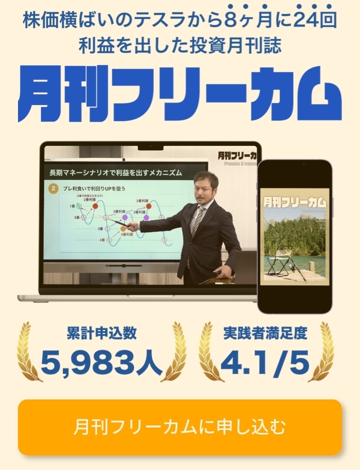 ・株価横ばいのテスラから8ヶ月に24回利益を出した投資月刊誌 月刊フリーカム